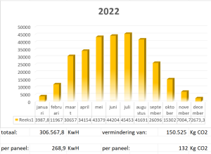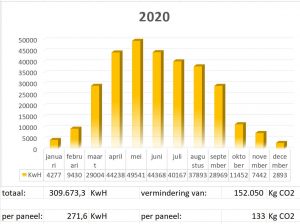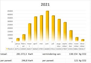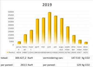 De maand juni had een gemiddelde opbrengst. op 5-6 was de opbrengst het laagste met 476 KwH. De hoogste opbrengst was op 14-6 met 2100 KwH. In totaal was de opbrengst deze maand 44204 KwH.